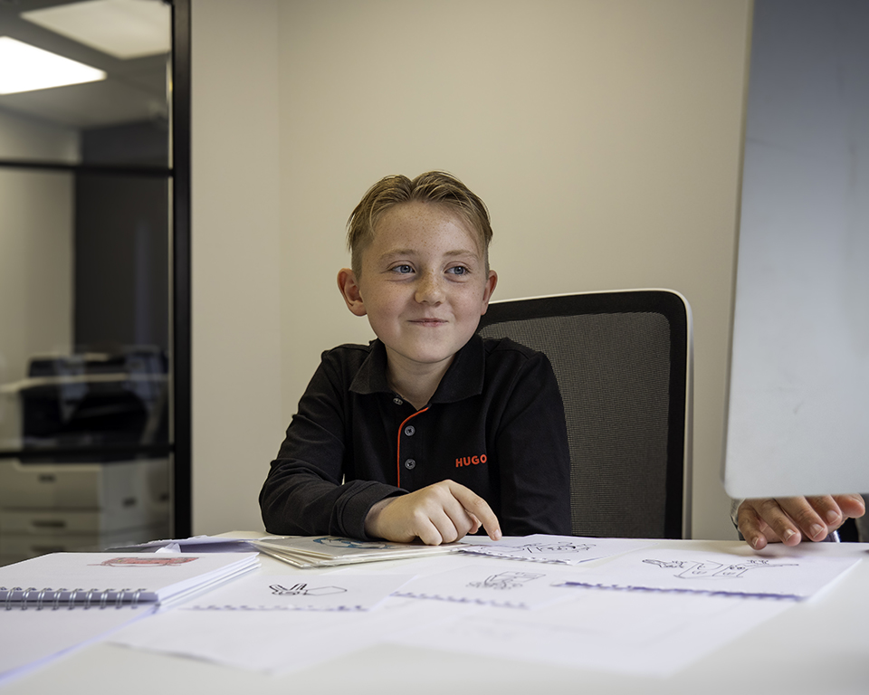 Hugo spent the day sharing his ideas, developing his drawings, and exploring how his artwork could be transformed into a card design. It was inspiring to see the imagination and effort he put into every detail, and for us, it was a privilege to help bring his vision to life.