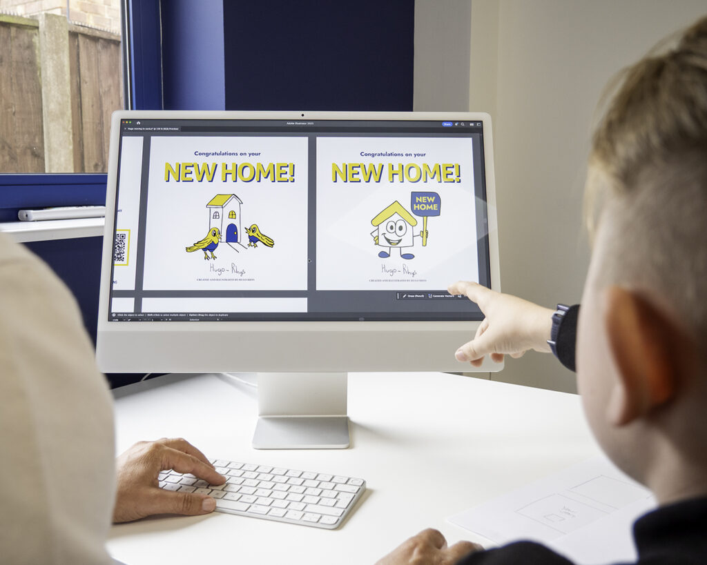 We were so thrilled to welcome Hugo into our Mapperley office recently, where he worked with us to design a brand-new card together. This special project combines Hugo’s creativity with our support, turning his sketches into a beautifully finished card that tells his story – and one that will soon be in the hands of our home movers.